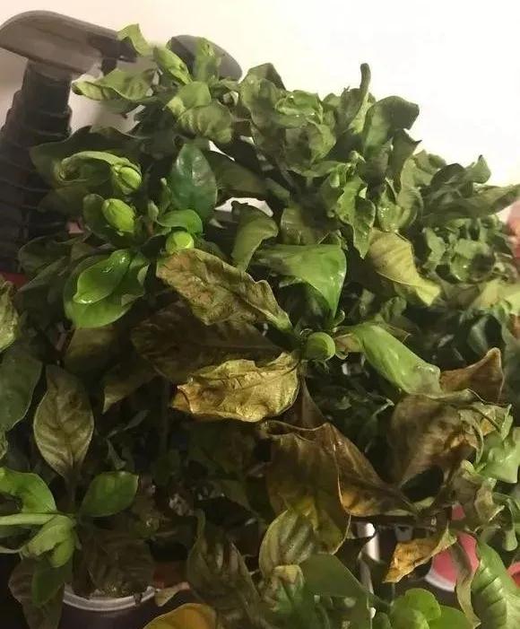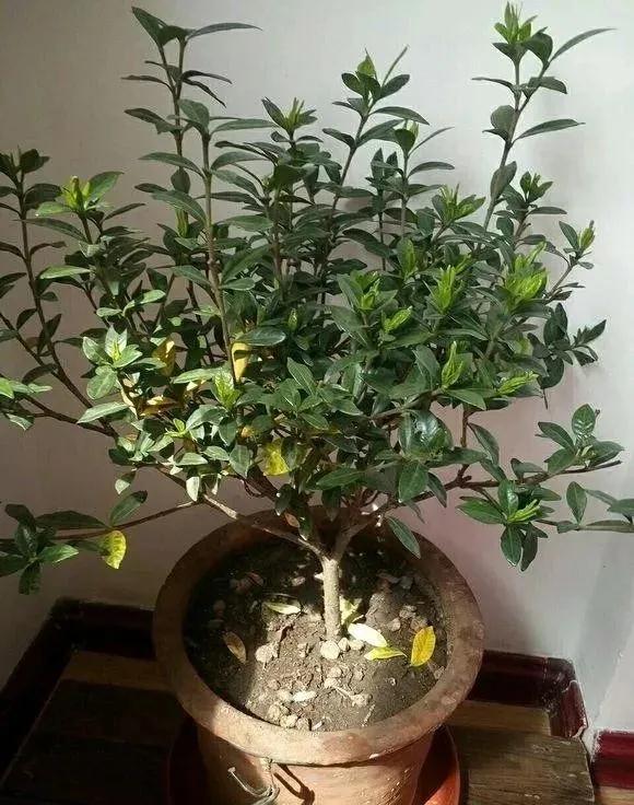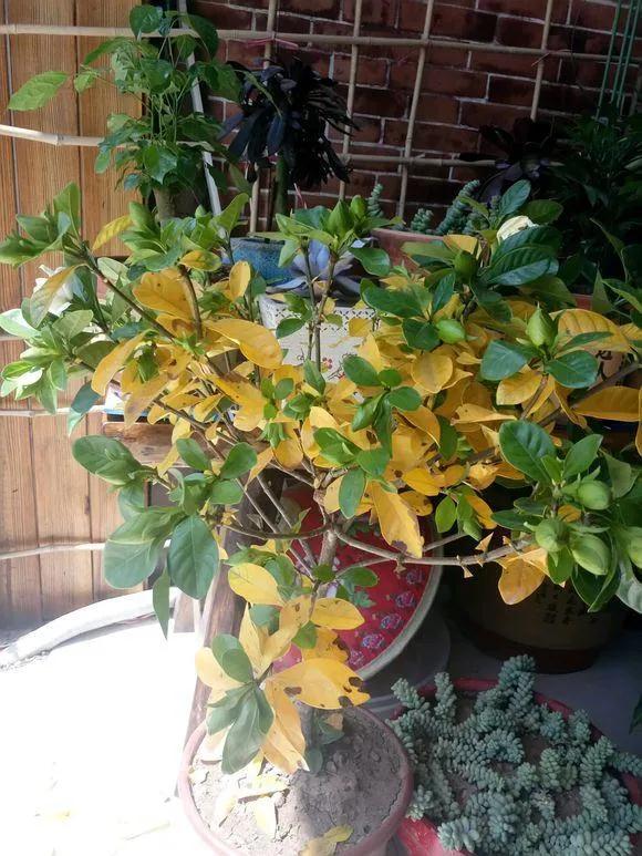 正常的梔子花長勢良好,葉片油綠,只有少數(shù)幾片葉子發(fā)黃掉落。這是正常的新陳代謝而黃葉。